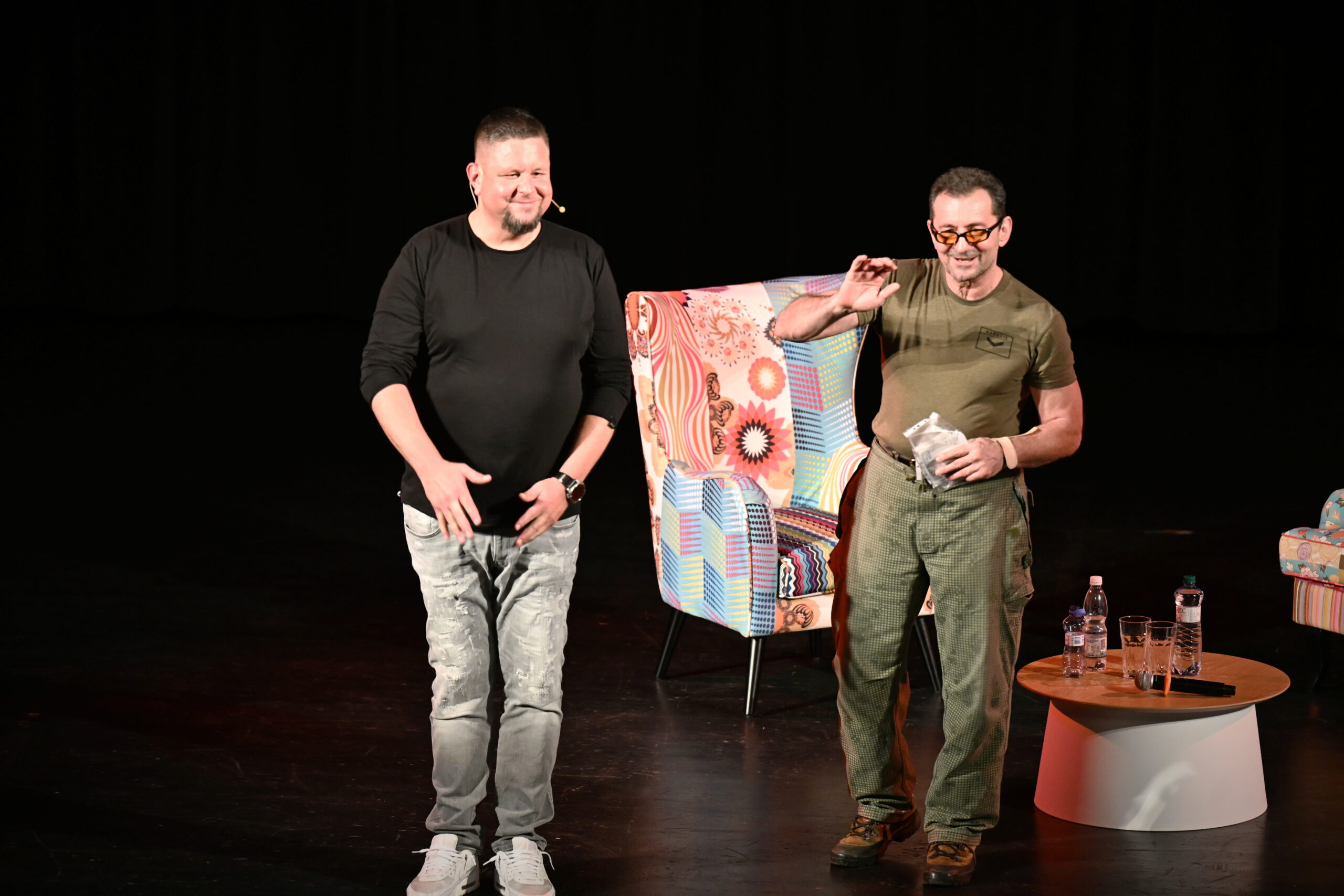To je improvizační show Partička s Michalem Suchánkem, Richardem Genzerem, Michalem Novotným, Jakubem Kohákem a Luďkem Staňkem.